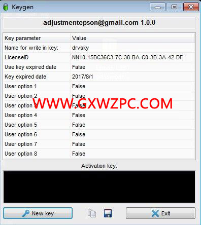 點擊New key生成一個注冊碼